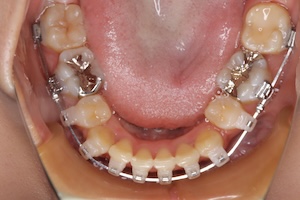 下は歯の抜いたスペースが埋まってきたため、7番目にも装置がつきました。